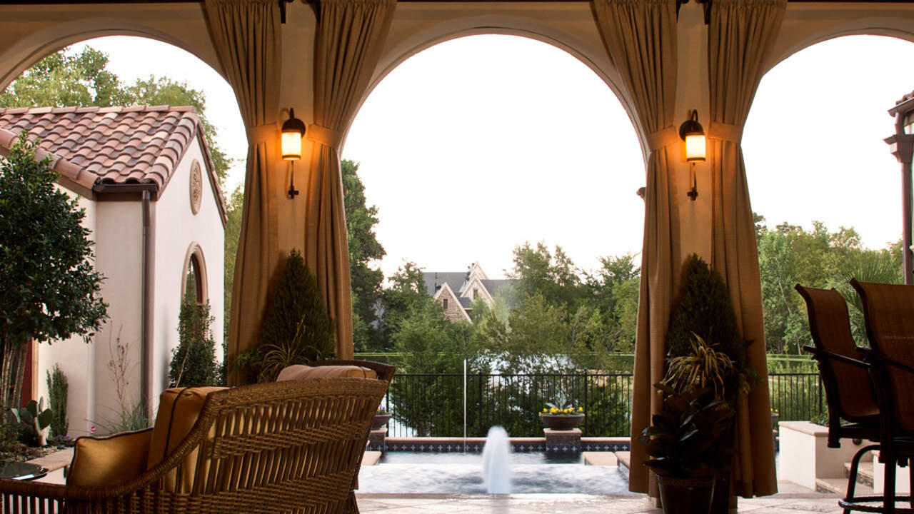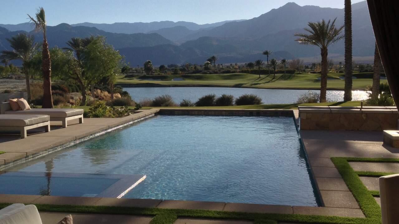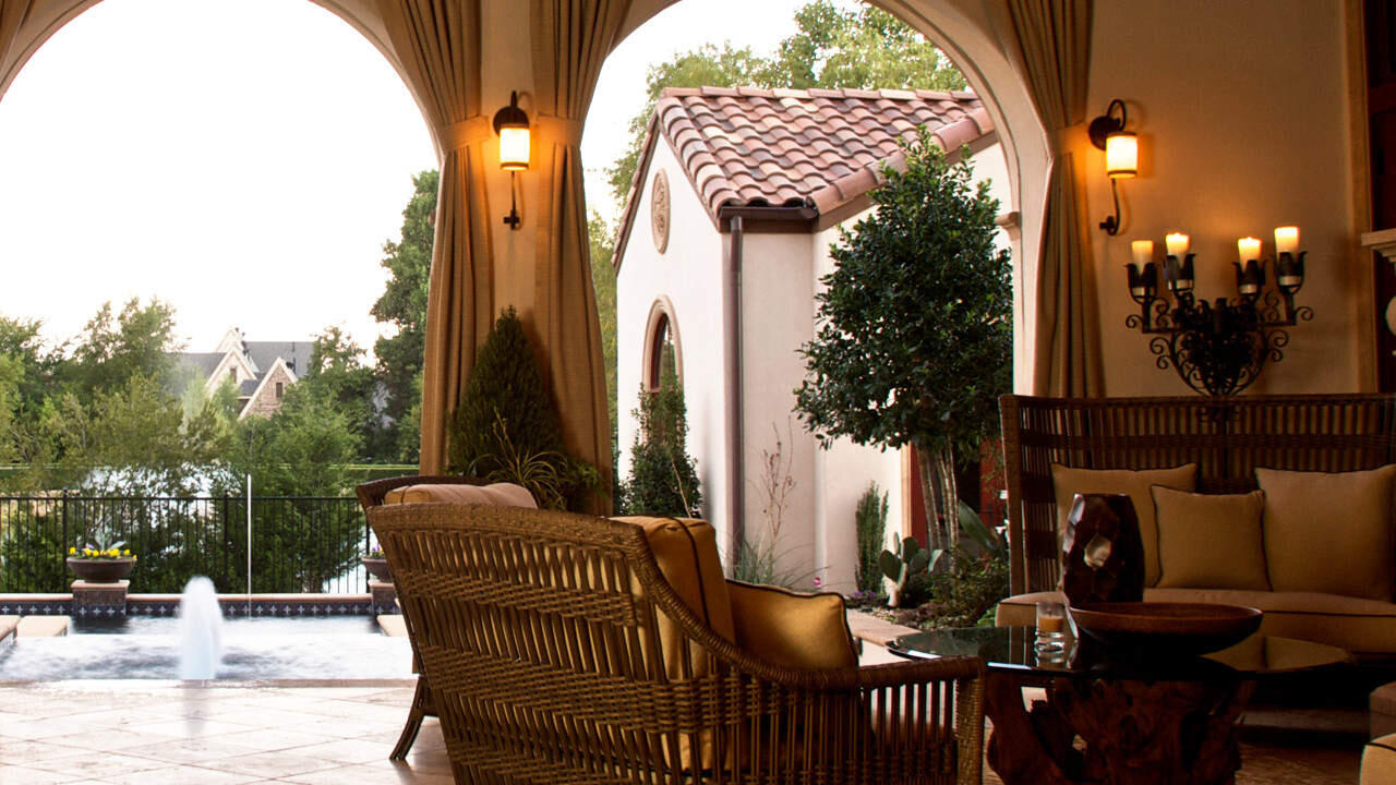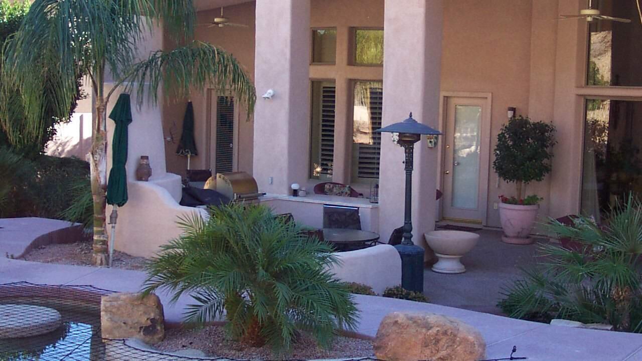 On the ground floor, five bathrooms, plus a cinema, three large patios, covered rear patio, Tuscan garden design, extra large pool with fountains and Jacuzzi and much more.